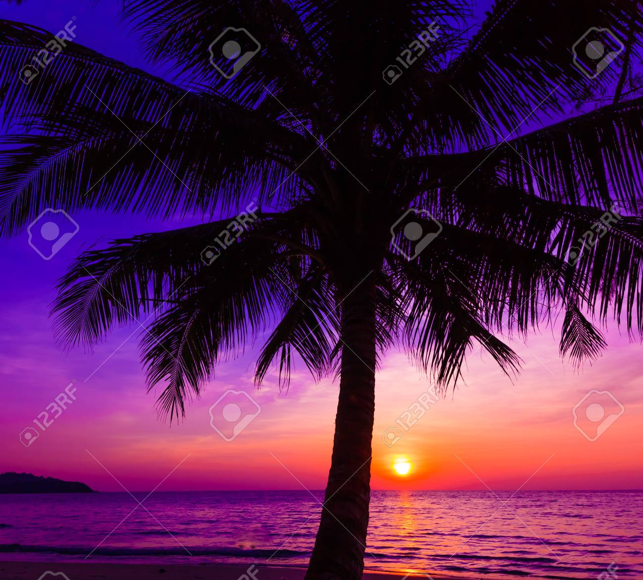 Beautiful Sunset Sunset Over The Ocean With Tropical Palm