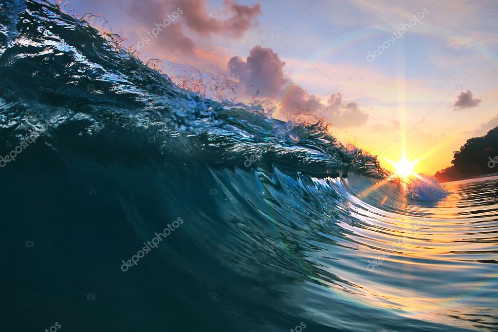 Beautiful Ocean Surfing Wave At Sunset Beach Stock Photo