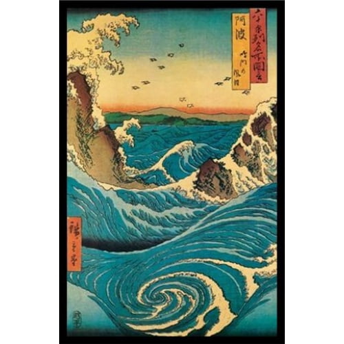Framed Navaro Rapids 1855 By Utagawa Hiroshige 36x24 Art Print Poster Famous Painting Japanese Woodblock Museum Master Ocean Waves