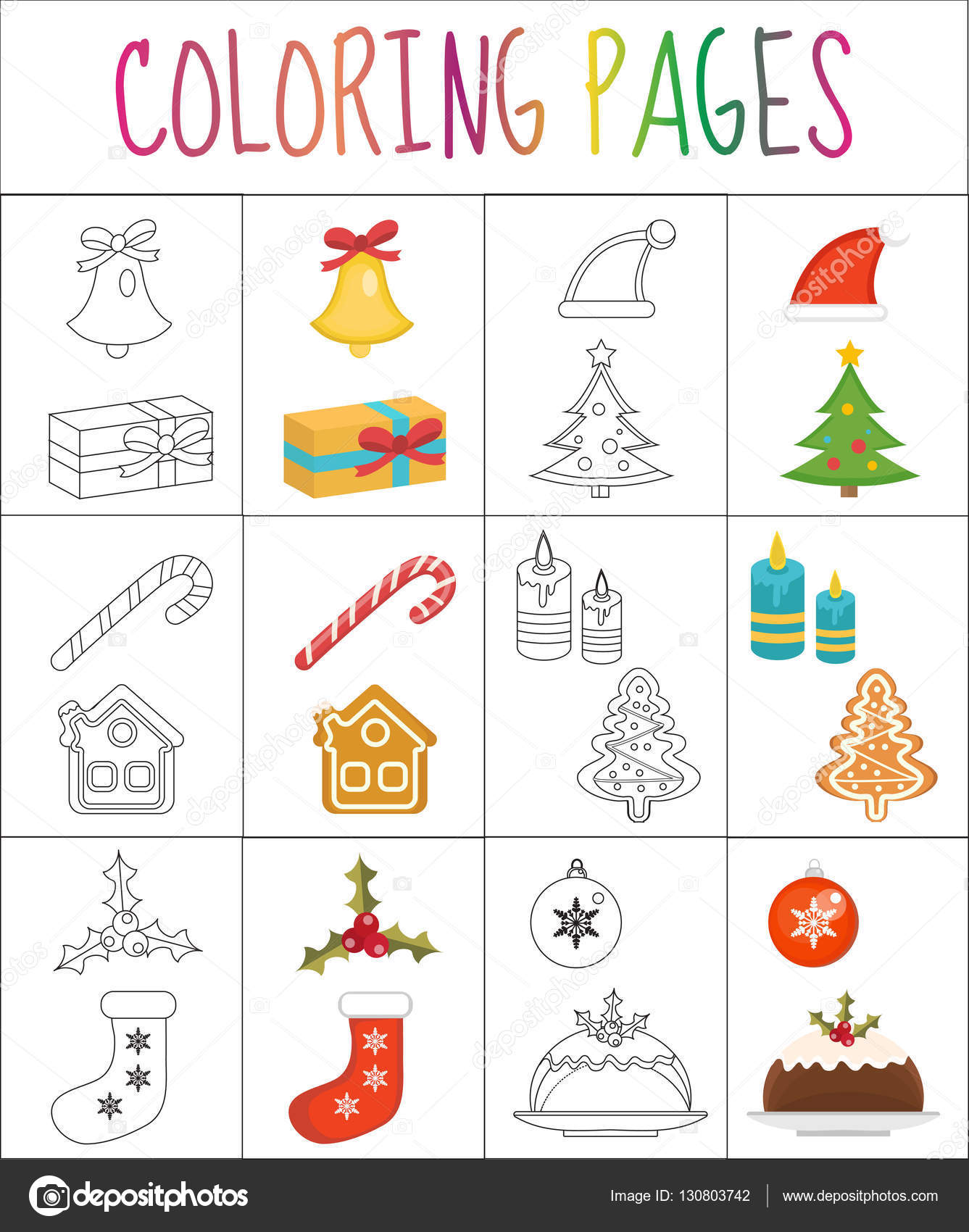 Página De Livro Para Colorir Conjunto De Natal Versão De