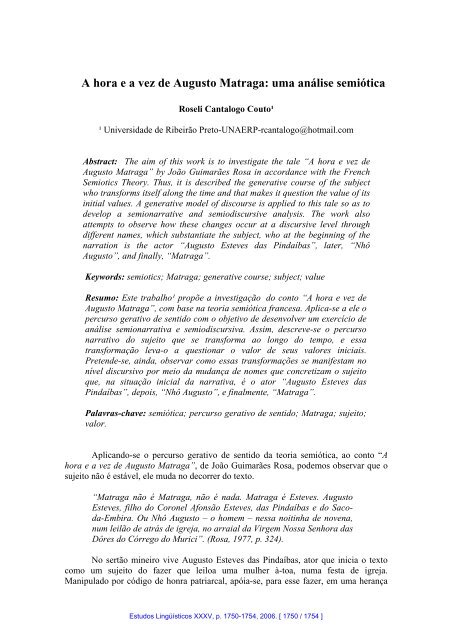 A Hora E A Vez De Augusto Matraga Uma Anlise Semitica Gel
