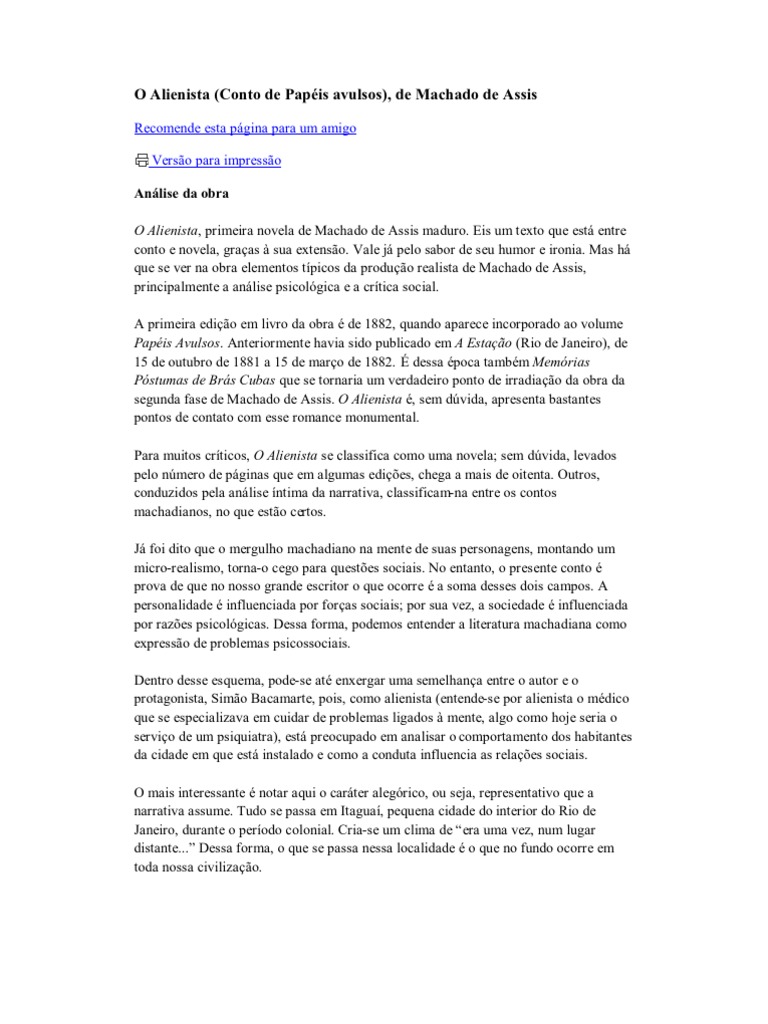 Aqui está a informação sobre Livro O Alienista Machado De Assis Pdf.
