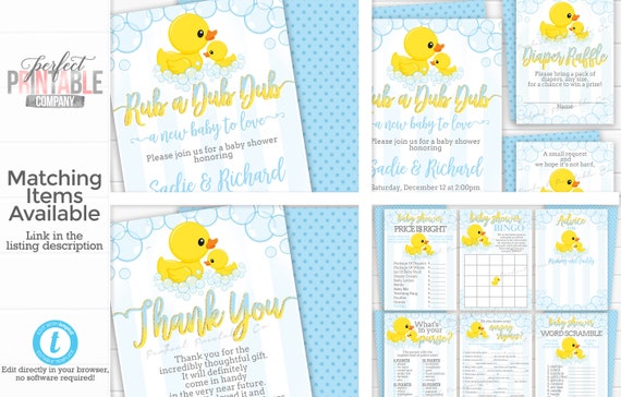 Duck Baby Shower Invitation Rubber Duck Invitation Duck Baby Shower Invite Ducky Blue And Yellow Rub A Dub Dub Editable Template 591