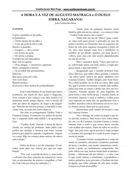 O Duelo E A Hora E A Vez De Augusto Matraga Vestibular
