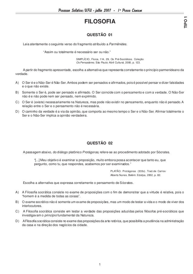 Ufu 2007 2 Prova Completa 1a Fase 1a Dia C Gabarito
