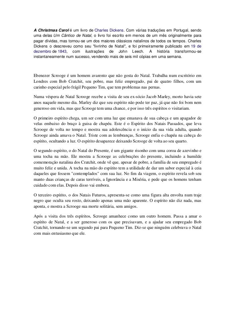 Viu o que ele perdeu por ser avarento presenciando seu antigo amor com família constituída e feliz. O segundo fantasma apareceu o fantasma do natal presente e mostrou o quanto ele estava sendo egoísta como patrão sendo injusto com o seu funcionário pagando um salário muito baixo. Mais uma véspera do feriado chega e ele se prepara para comemorar a data à sua maneira. A obra conta a história de ebenezer scrooge um homem de negócios avarento e sovina que recebe a visita dos três espíritos de natal. Nunca li nenhum livro tendo o natal como tema ou época bem eu estava enganada. O natal do avarento scrooge é um homem avarento que não gosta do natal. Depois de alguns dias lembrei de um livro que li na época da escola e que amei. Dono de uma loja em londres que após a visita dos três espíritos numa noite de natal tem a chance de refletir sobre seu comportamento após a visita de três espíritos. O natal do avarento 26. Mas aí eu pensei. Confesso que estava com medo de ser uma leitura bem enfadonha mas como eram poucas páginas resolvi arriscar. O livro o natal do avarento de charles dickens apresenta o sr. Um conto de natal esse é o nome correto da história.