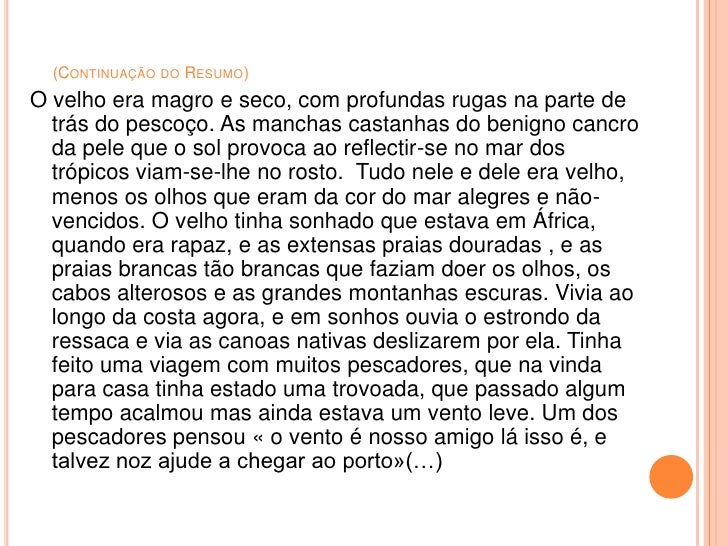 Você não está enganado Resumo Do Livro O Velho Eo Mar.