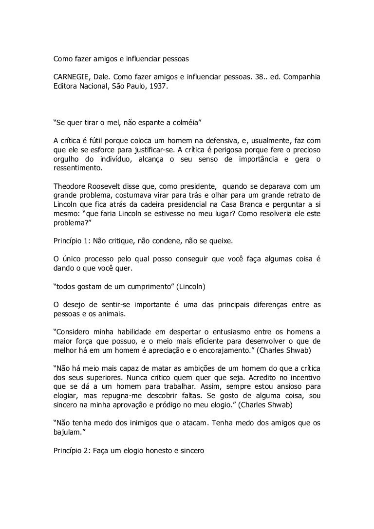 Encontre mais totalmente relacionado Trechos Do Livro Como Fazer Amigos E Influenciar Pessoas.