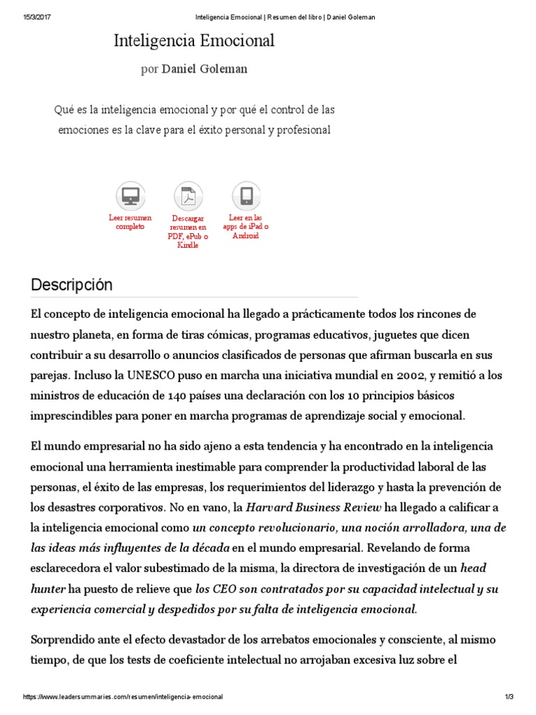 Inteligencia Emocional Resumen Del Libro De Daniel Goleman