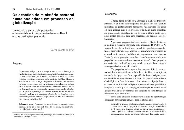Pdf 7 Os Desafios Do Ministério Pastoral Numa Sociedade Em