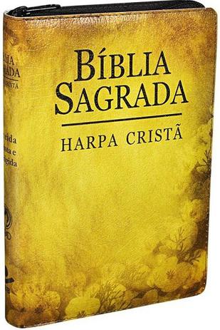 Arc065hlgz Bíblia Sagrada Letra Grande Harpa Cristã Zíper Flores Amarela Sociedade Bíblica Do Brasil