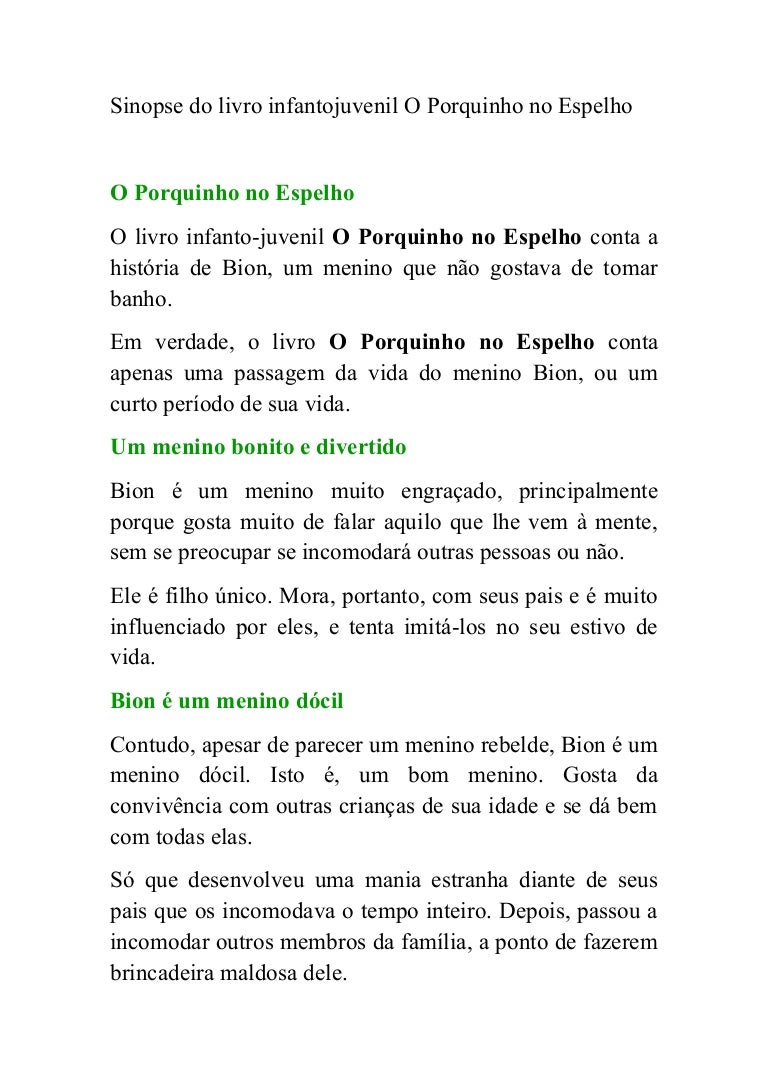 Sinopse Do Livro Infantojuvenil O Porquinho No Espelho