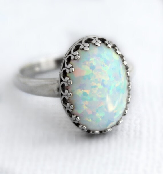 Sterling Silver White Opal Ring Large Oval Lab Created Opal Ring Sterling Silver October Birthstone Ring White Opal Jewelry Gift For Her