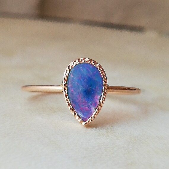Natural Opal Engagement Ring Rose Gold Opal Ring Promise