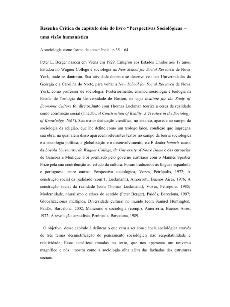 Doc Resenha De Sociologia Nany Alves Academiaedu