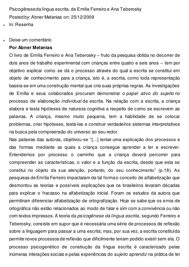 Psicogênese Da Língua Escrita Ana Teberosky E Emilia Ferrero