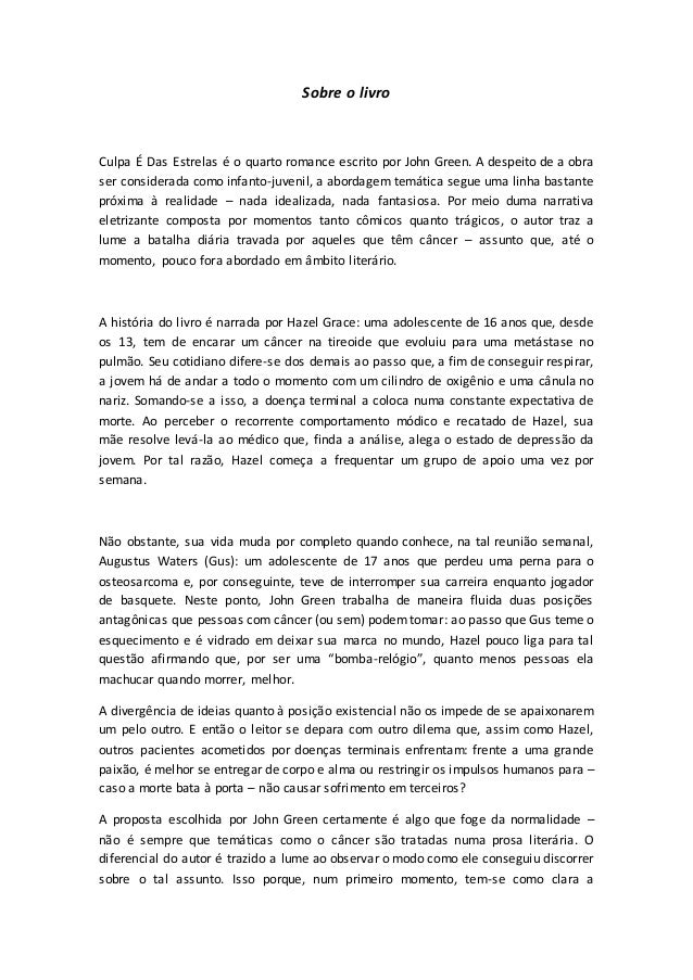 Informação relevante relacionada Resumo Livro A Culpa é Das Estrelas.