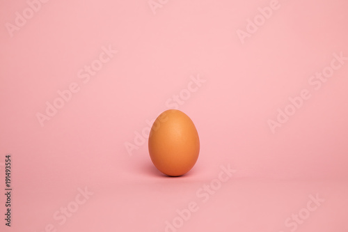 Close Up Of Brown Egg In Line On Plain Pastel Pink