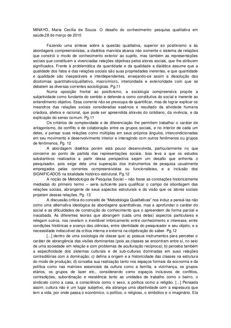 O Desafio Do Conhecimento Pesquisa Qualitativa Em Saúde Mina
