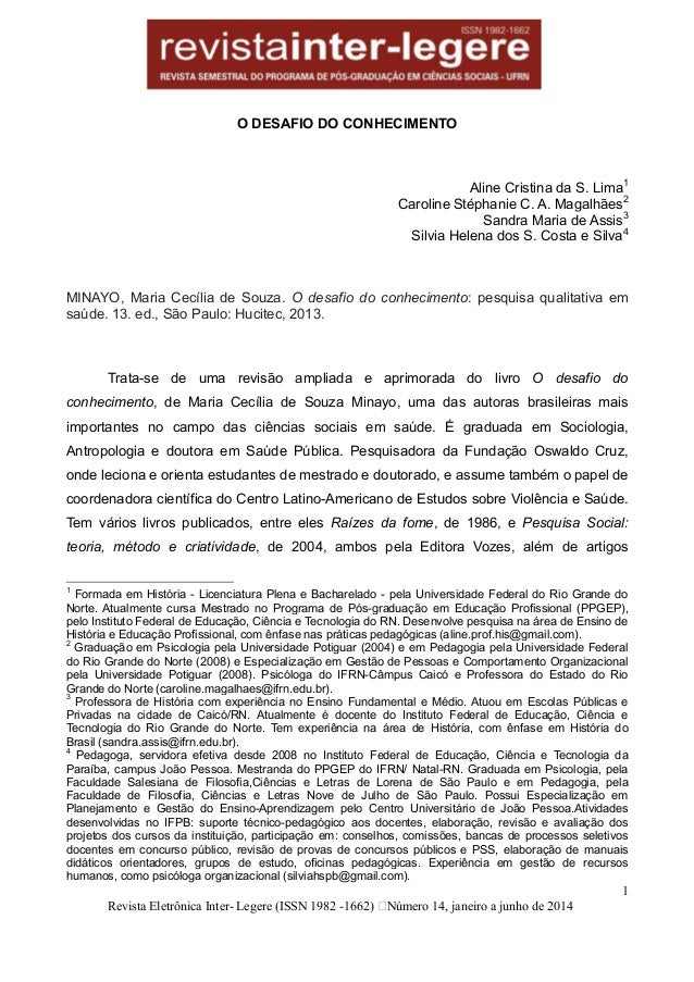 Aqui estão as recomendações de informações sobre Baixar Livro O Desafio Do Conhecimento Minayo.