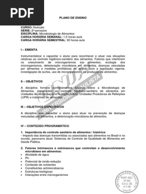 Plano De Ensino Microbiologia De Alimentos Infecção