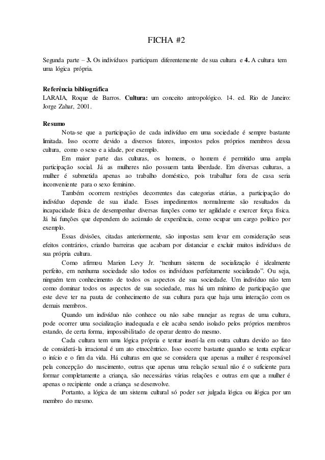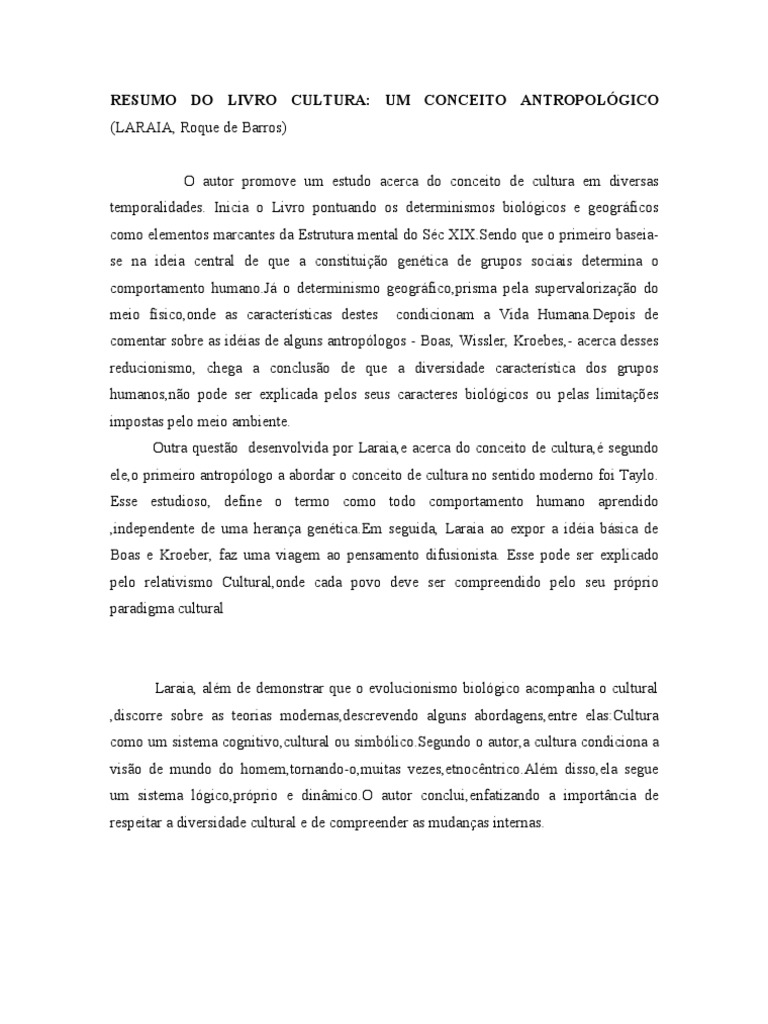 Resumo Do Livro Cultura Um Conceito Antropológico R Laraia