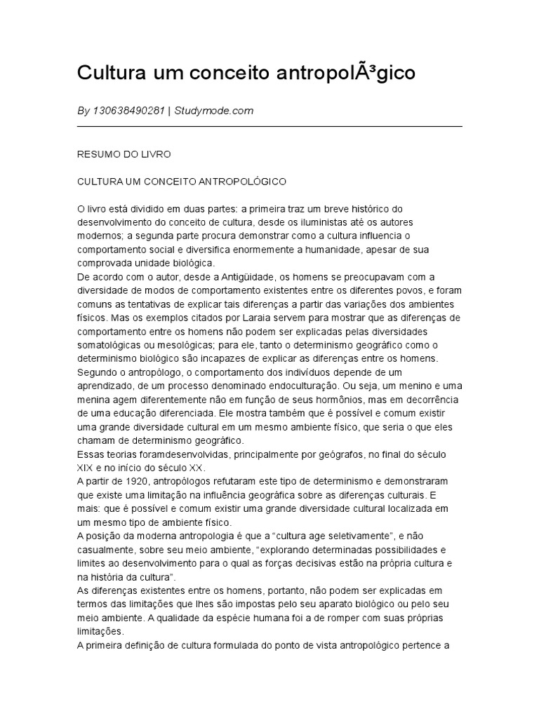 Informação sobre Resenha Do Livro Cultura Um Conceito Antropológico.