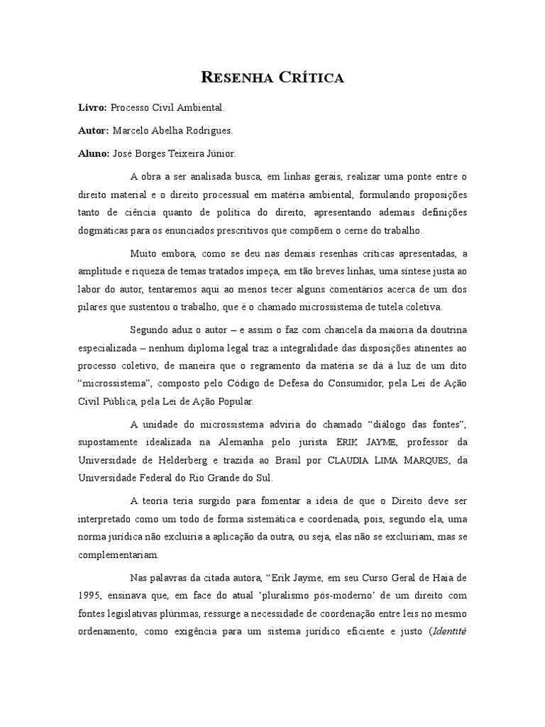 Resenha Crítica Do Livro Processo Civil Ambiental