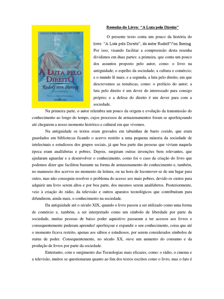 Resenha Do Livro A Luta Pelo Direito 2 Laudas