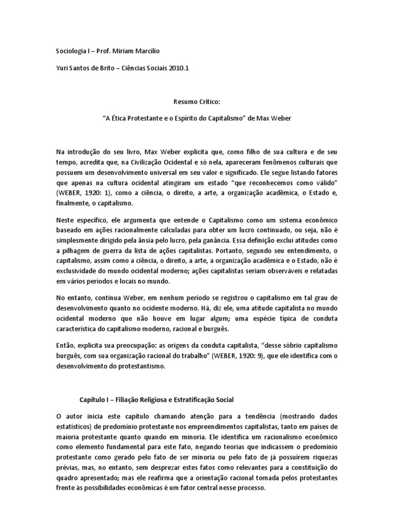 O seguinte é uma discussão sobre a Resumo Do Livro Etica Protestante E O Espirito Capitalista.