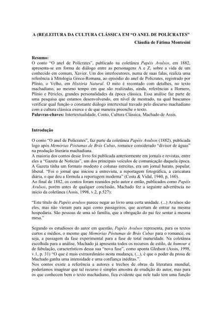 Você está procurando artigos sobre Resumo Do Livro O Anel De Policrates E Outras Historias.