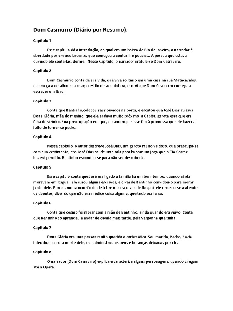 Informações importantes relacionados Resumo Por Capitulo Do Livro Dom Casmurro.