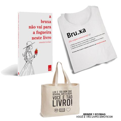 Kit A Bruxa Não Vai Para A Fogueira Neste Livro Livro Camiseta Verbete Branca Brinde Ecobag Ler é Tão Bom Emoticon Editora Leya