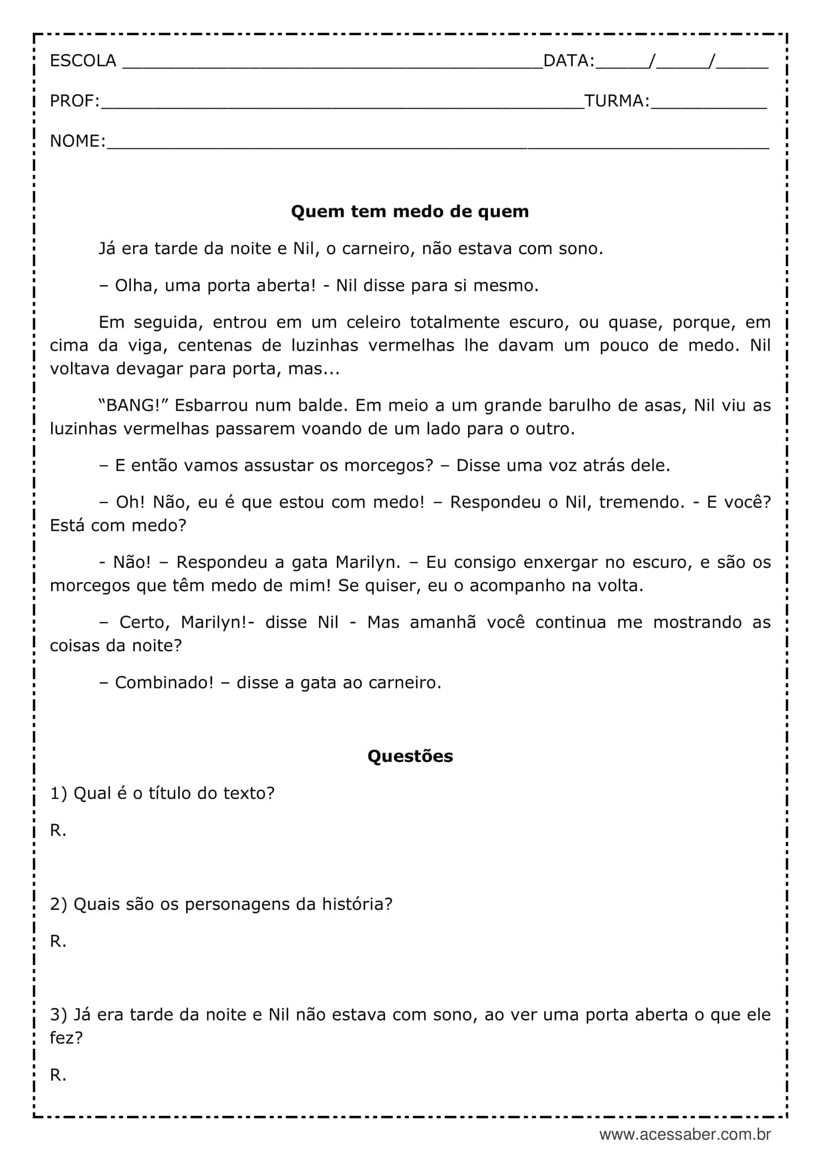 Interpretação De Texto Quem Tem Medo De Quem 4º Ano