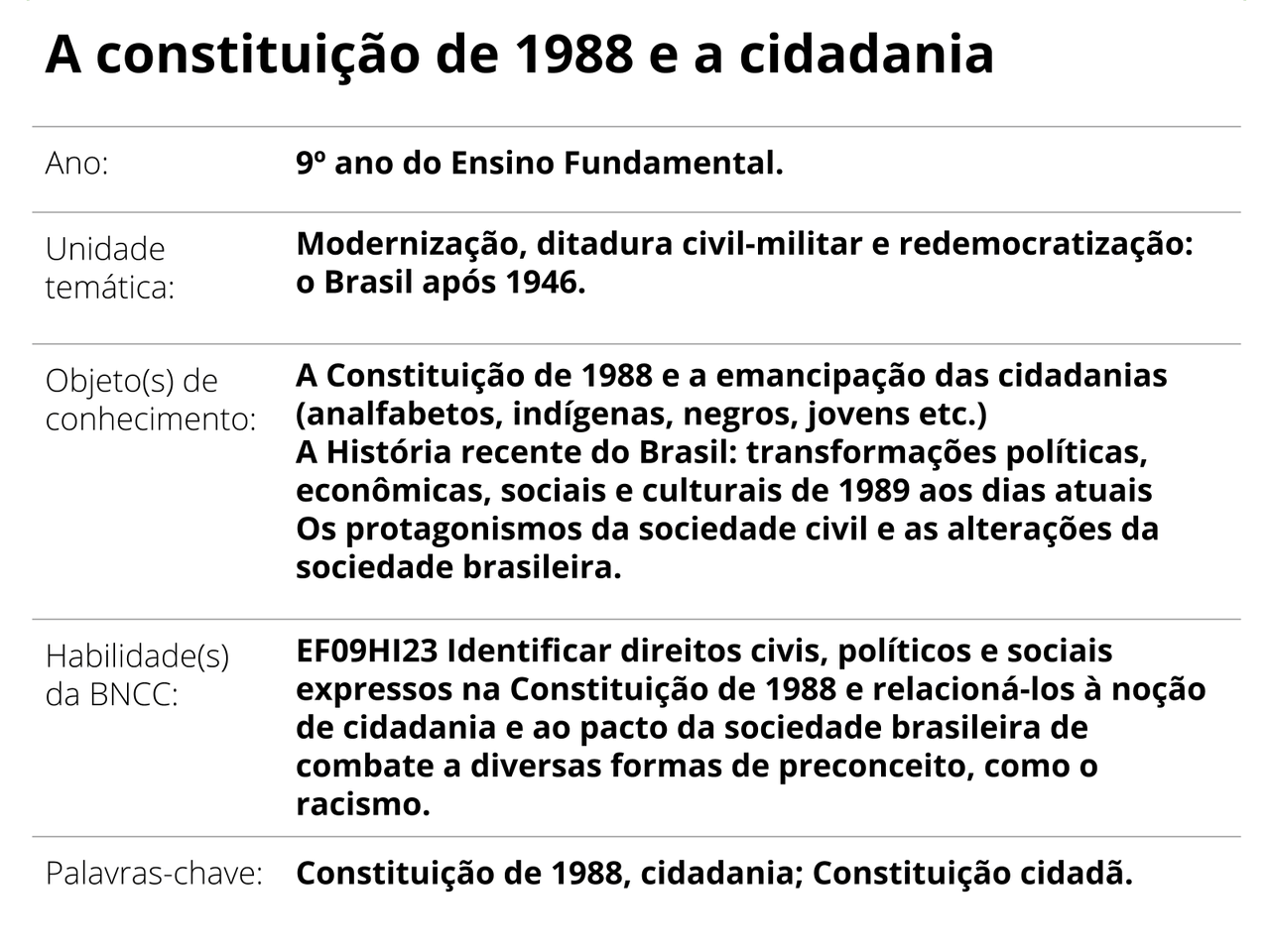 Plano De Aula 9º Ano História A Constituição De 1988 E