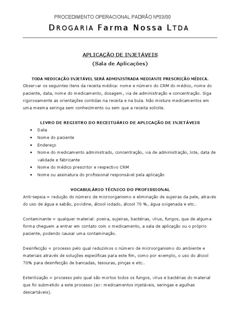 Pop Aplicação Injetaveis Pop Aplicação Injetaveis Docsity