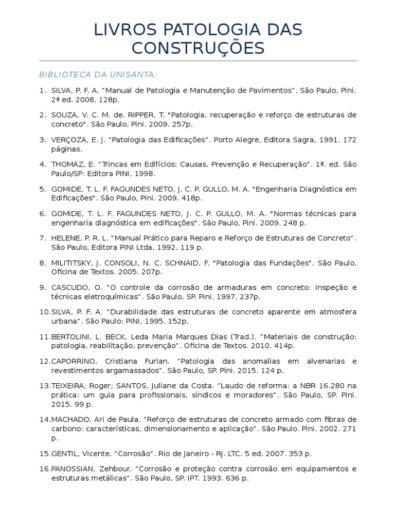 Listadelivrospatologiadasconstrucoesa279043