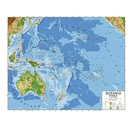 Cartina Carta Geogrifica Oceania Australia Bifacciale Fisica