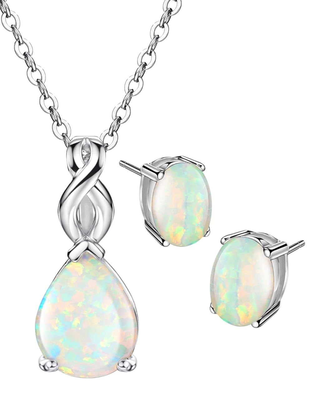 White Opal Jewelry October Birthstone Earrings Necklace Set Bijoux