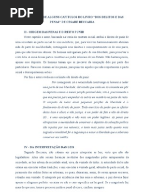 Resumo Por Capítulo Dos Delitos E Das Penas Cesare Beccaria