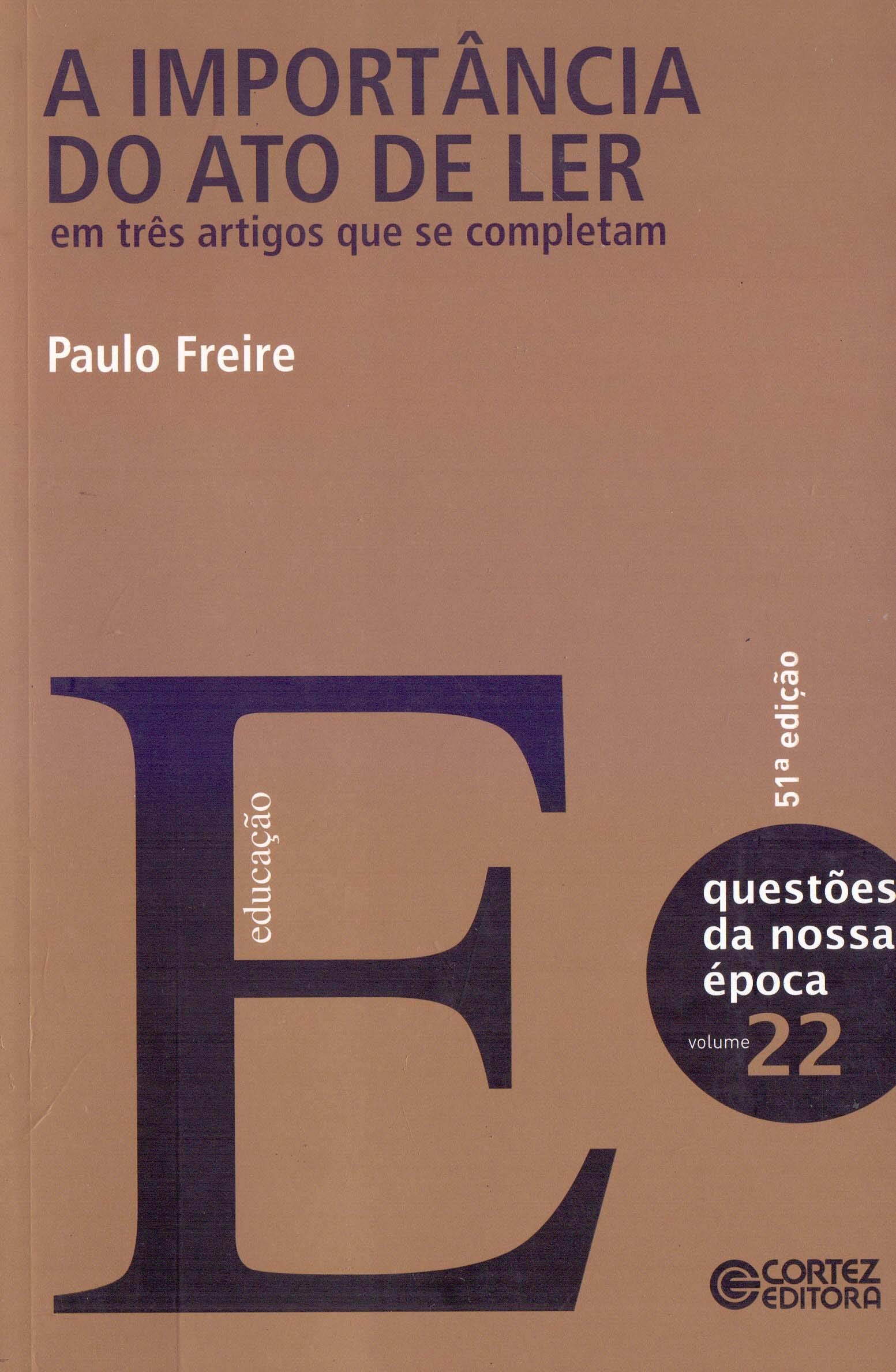O livro de paulo freire a importância do ato de ler constituído por três artigos que se completam é apresentado em uma palestra sobre a alfabetização de adultos e de bibliotecas populares onde o autor trás a temática da leitura discutindo sua importância como ela deve ser e de que forma ela se dar no processo da. A importância do ato de ler.