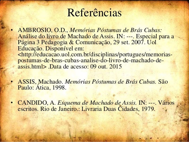 Resumo Do Livro Memórias Póstumas De Brás Cubas