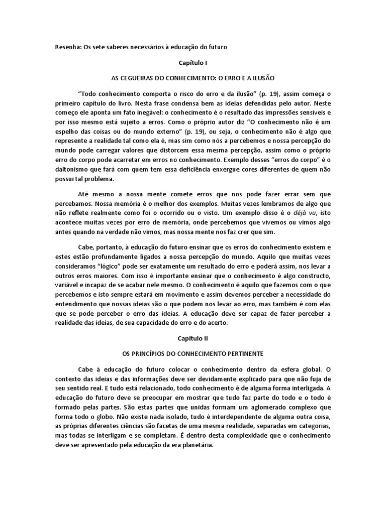 Resenha Os Sete Saberes Necessários à Educação Do Futuro