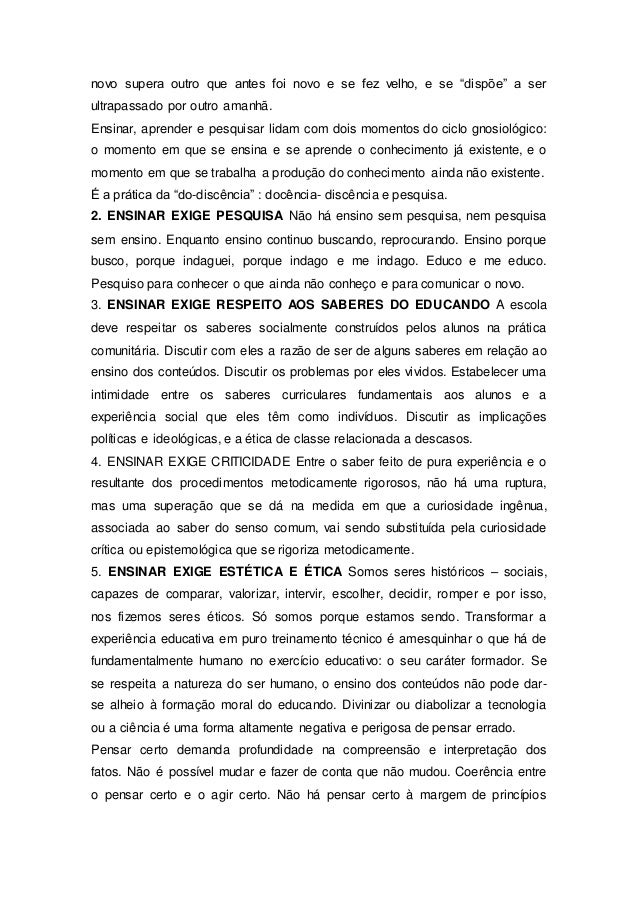 Resumo Do Livro Pedagogia Da Autonomia Pedagogia