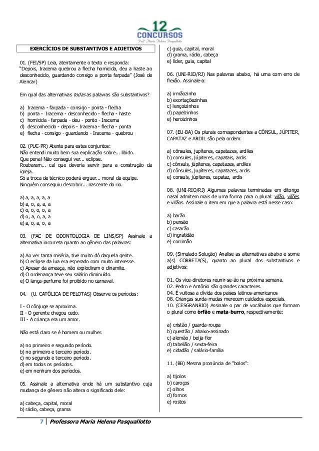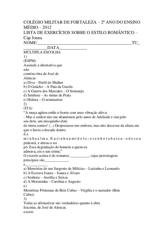 Exercicios de vestibular. Exercícios de literatura sobre josé de alencar com gabarito.