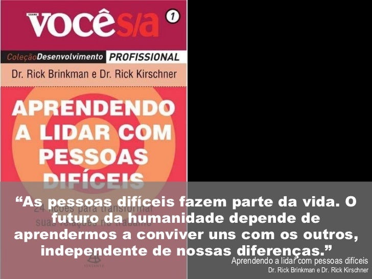 As mais variadas edições novas seminovas e usadas pelo melhor preço. O autor analisa o assunto de todos os ângulos com destaque para. De acordo com o livro lidando com pessoas difíceis da harvard business school as chamadas pes. Pdf como lidar com pessoas difíceis. O colega de trabalho. Algumas pessoas podem nos fazer muito mal. Susan andrews na revista época publicado no livro por uma. Como liderar pessoas difíceis pdf autor. Aprendendo a lidar com pessoas dificeis vol1. Confesso que não sabia bem o que dizer sobre o tema. Como iidar com pessoas o termo difícil aparece em terceiro lugar das pesqui sas o que só comprova. Pdf como lidar com pessoas difíceis. Depois de ler este livro você verá como será bem mais fácil lidar com pessoas venenosas destrutivas e sobreviver a elas.