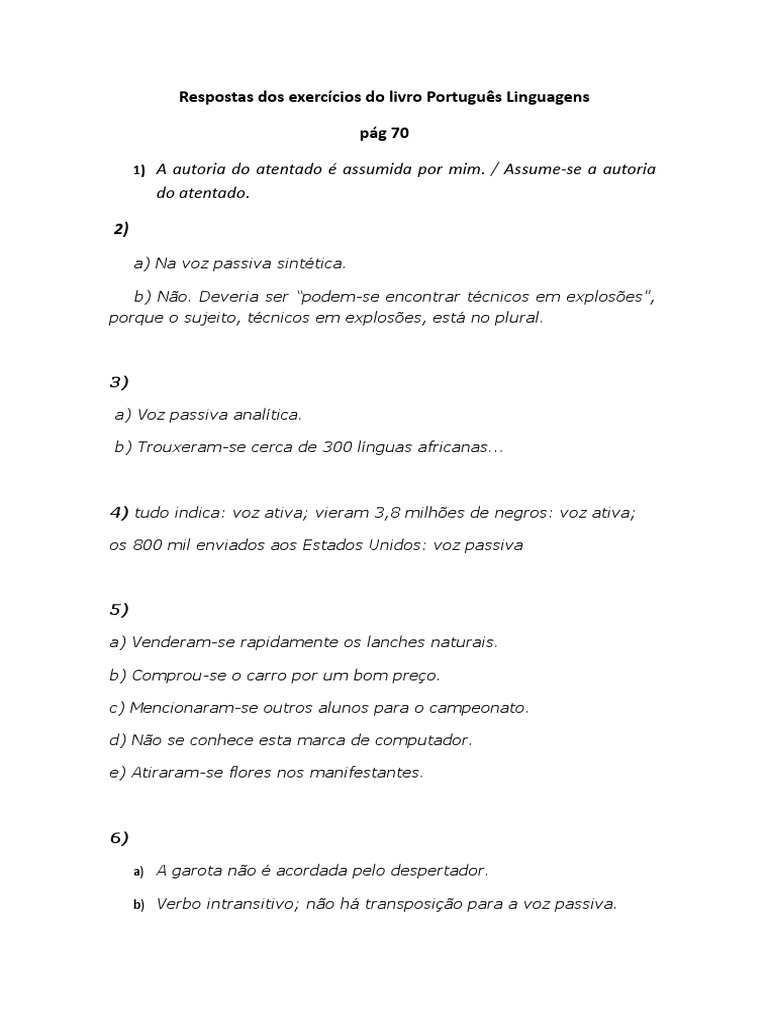 Respostas Dos Exercícios Do Livro Português Linguagens