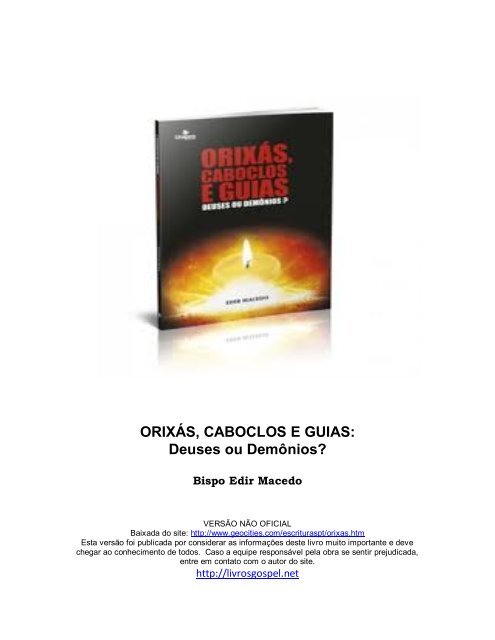 Encontre livro do edir macedo orixás caboclos e guias aqui. Administrador blog Resenhas de Livros 2019 compartilha informações e imagens relacionadas ao livro do edir macedo orixás caboclos e guias que estamos procurando do compartilhamento de recursos.