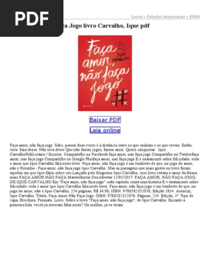 Faca Amor Nao Faca Jogo Ique Carvalho Pdf Free Download
