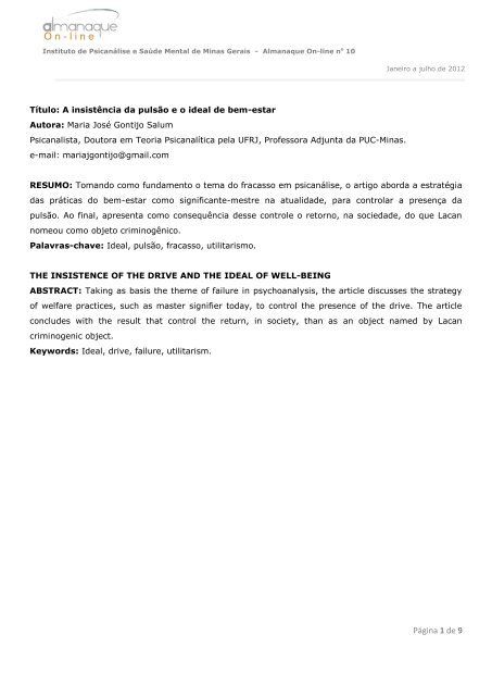 Arquivo Em Pdf Instituto De Psicanálise E Saúde Mental De